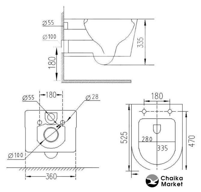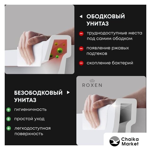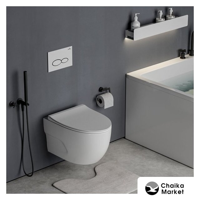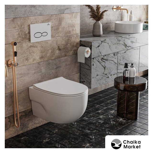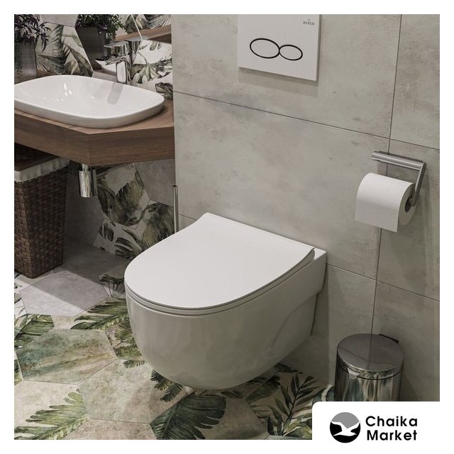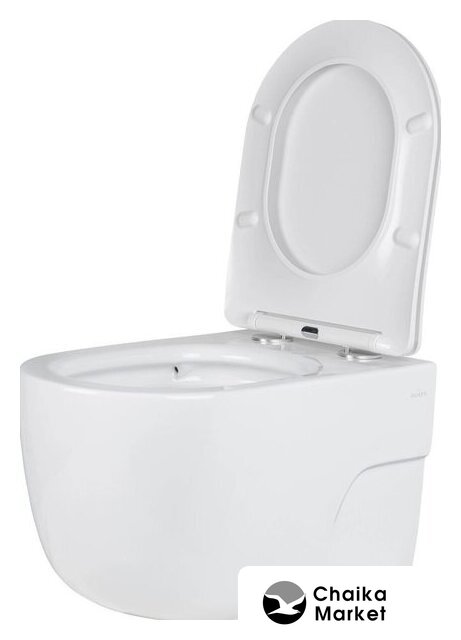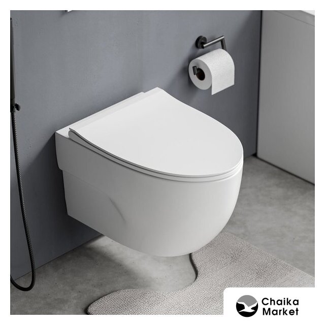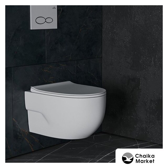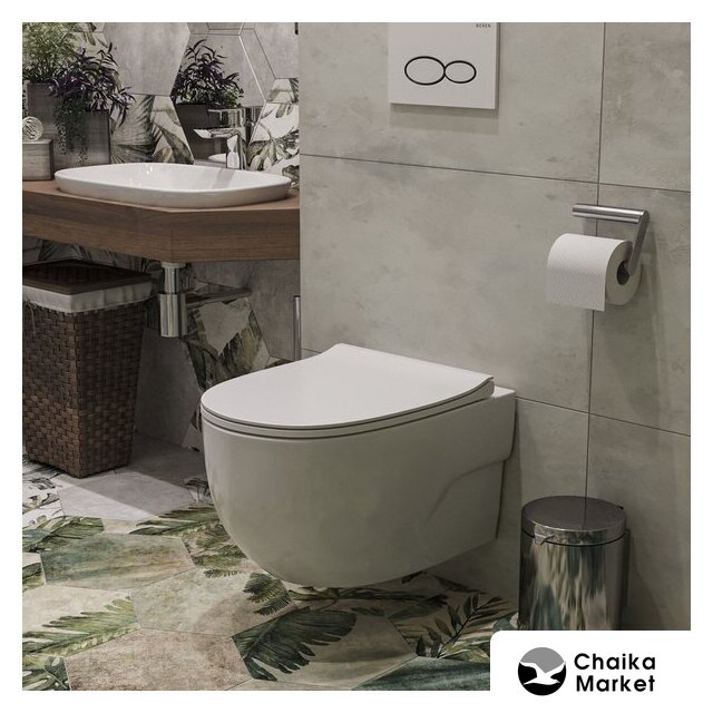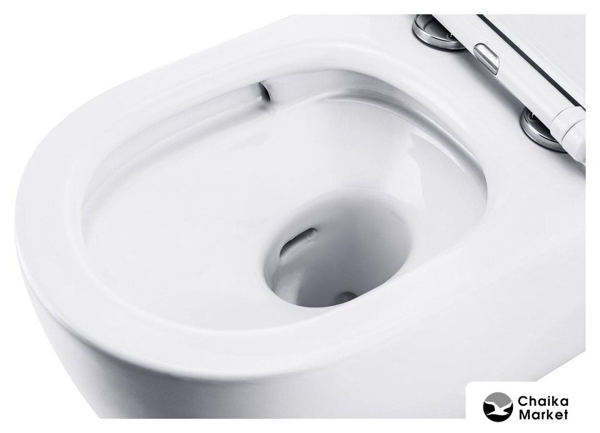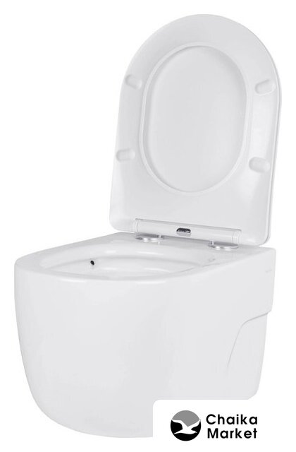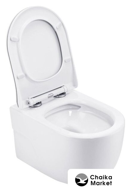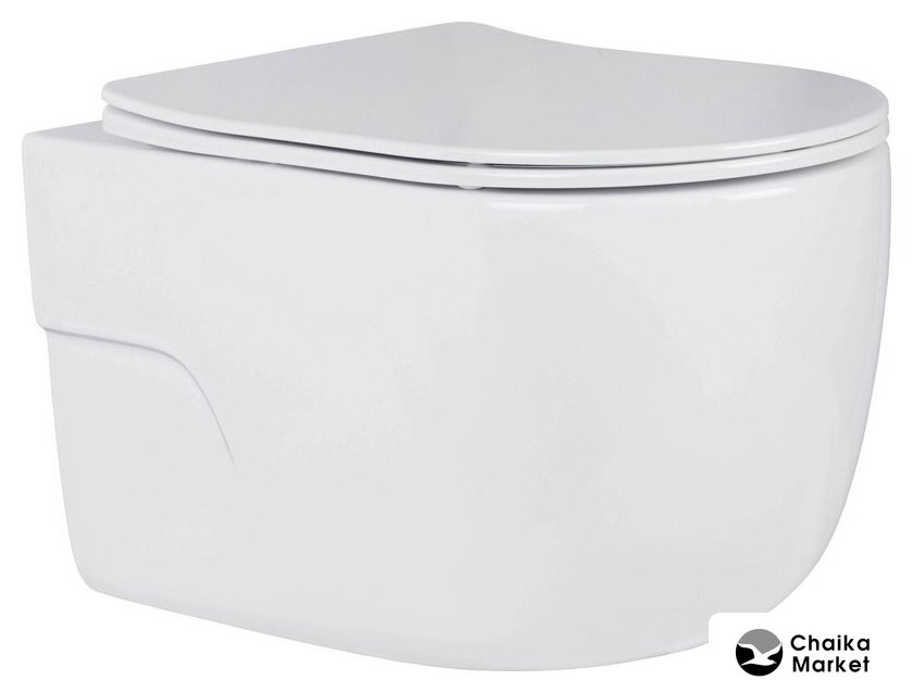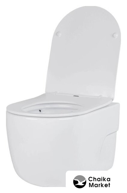 подвесной, конструкция: без бачка, задний подвод воды, горизонтальный выпуск, однорежимный слив, с сиденьем, безободковый