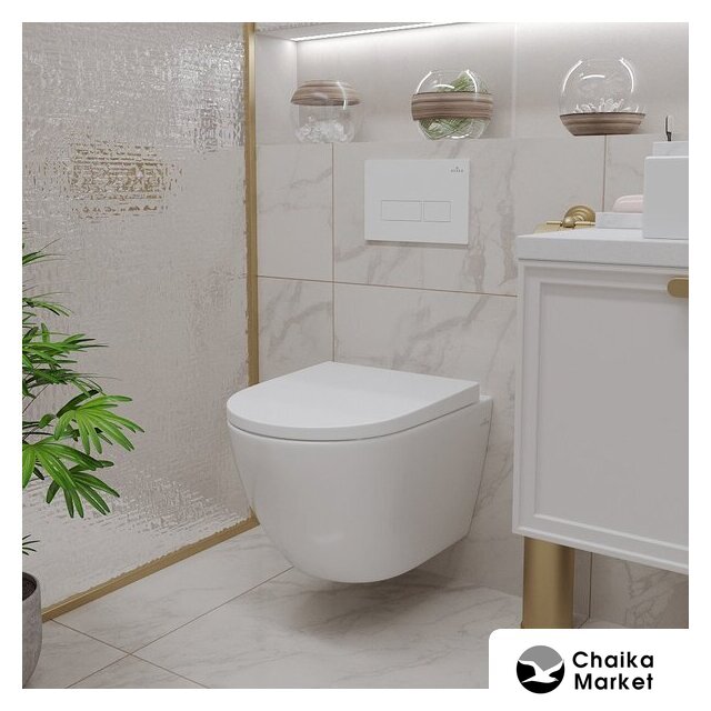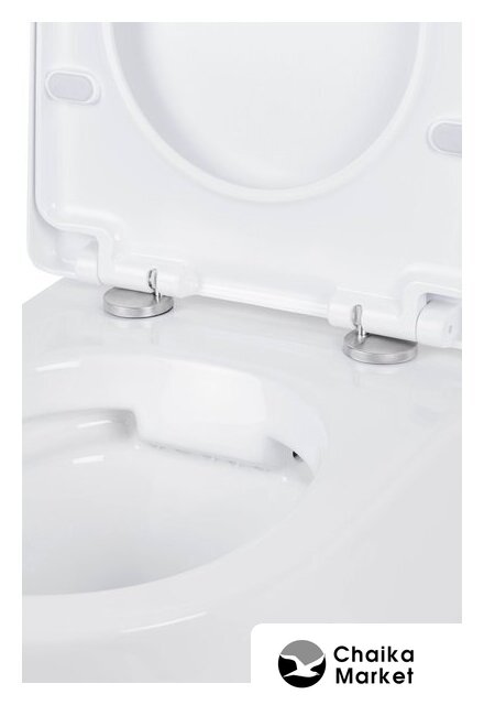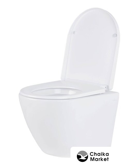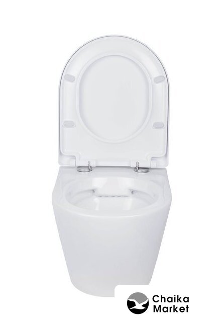 подвесной, конструкция: без бачка, горизонтальный выпуск, с сиденьем, безободковый