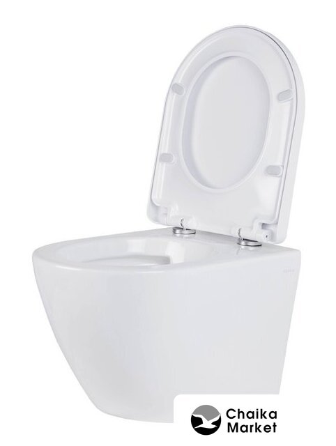 подвесной, конструкция: без бачка, задний подвод воды, горизонтальный выпуск, с сиденьем, безободковый