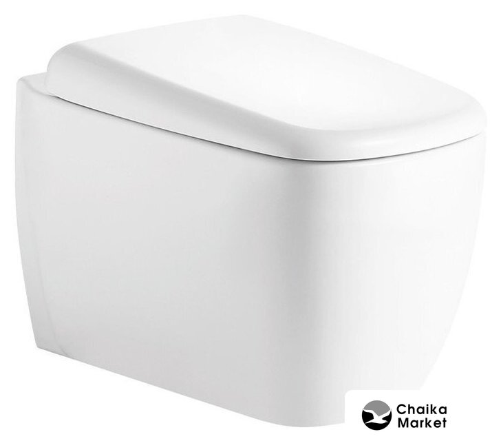 подвесной, конструкция: без бачка, задний подвод воды, горизонтальный выпуск, двухрежимный слив, с сиденьем, безободковый