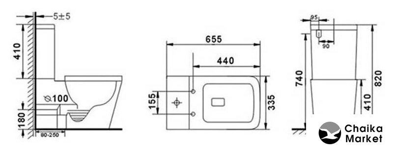 напольный, конструкция: компакт, нижний подвод воды, горизонтальный выпуск