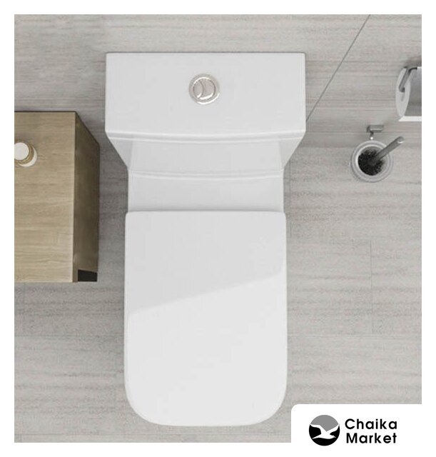 напольный, конструкция: компакт, нижний подвод воды, горизонтальный выпуск, двухрежимный слив, с сиденьем, безободковый