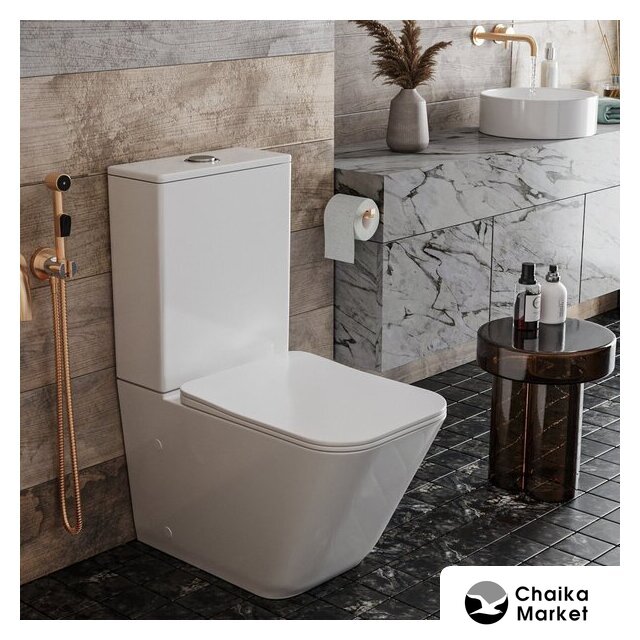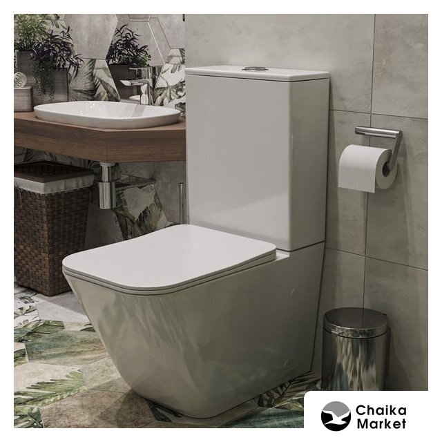 напольный, конструкция: компакт, нижний подвод воды, универсальный выпуск, двухрежимный слив, с сиденьем, безободковый
