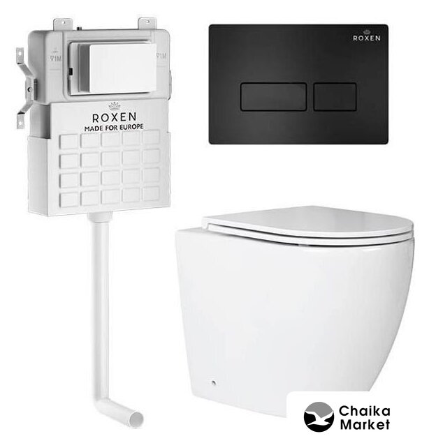 приставной, конструкция: без бачка, задний подвод воды, горизонтальный выпуск, двухрежимный слив, с сиденьем, безободковый