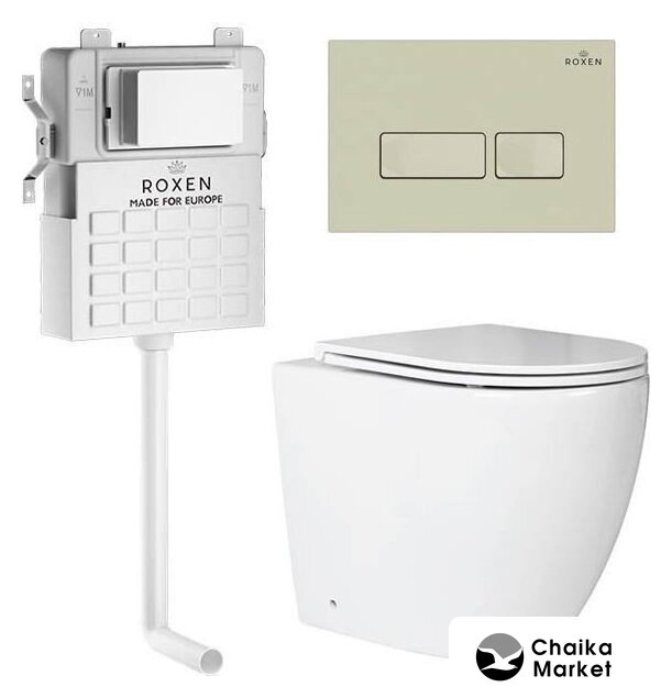 приставной, конструкция: без бачка, задний подвод воды, горизонтальный выпуск, двухрежимный слив, с сиденьем, безободковый