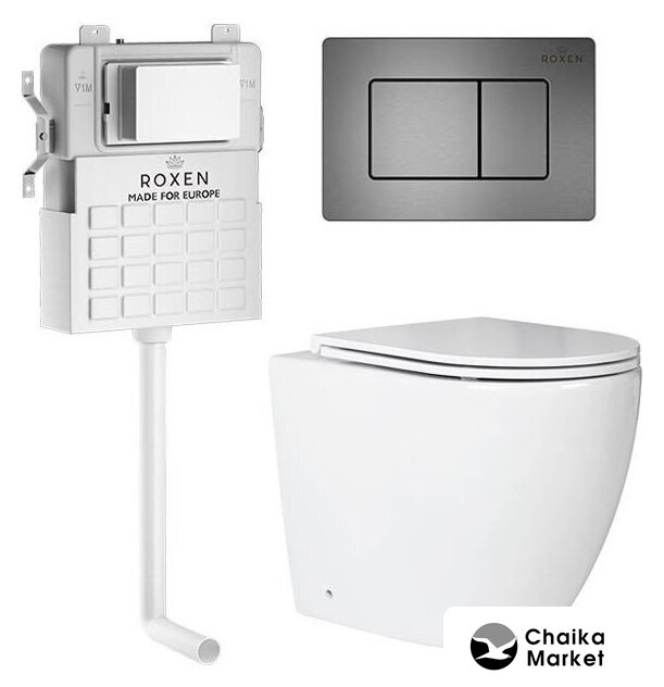 Унитаз приставной Roxen Antares в комплекте с инсталляцией Attach 5 в 1 967074 (кнопка: оружейная сталь) — Chaika Market
