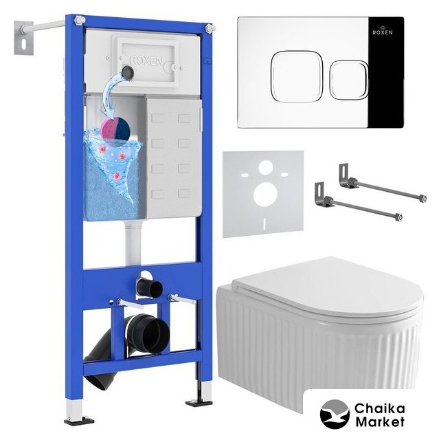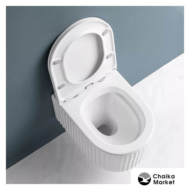 подвесной, конструкция: без бачка, задний подвод воды, горизонтальный выпуск, двухрежимный слив, с сиденьем, безободковый
