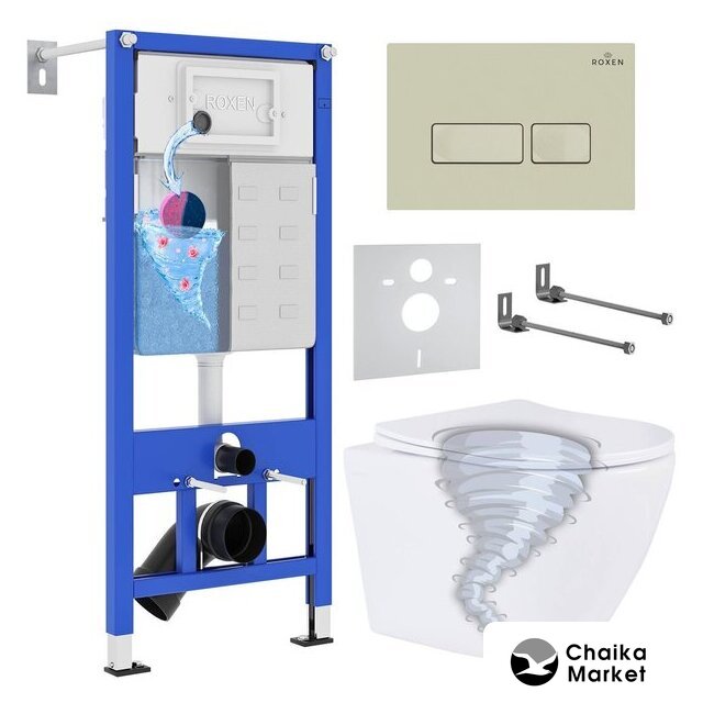 Унитазы Roxen Roxen Antares Tornado в комплекте с инсталляцией StounFix Dual Fresh 6 в 1 968326 (кнопка: пастель бежевый) Код товара: 11011280