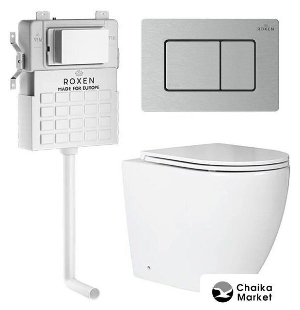 приставной, конструкция: без бачка, задний подвод воды, горизонтальный выпуск, двухрежимный слив, с сиденьем, безободковый