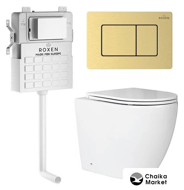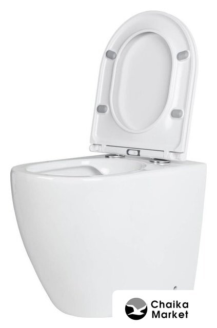 приставной, конструкция: без бачка, задний подвод воды, горизонтальный выпуск, двухрежимный слив, с сиденьем, безободковый