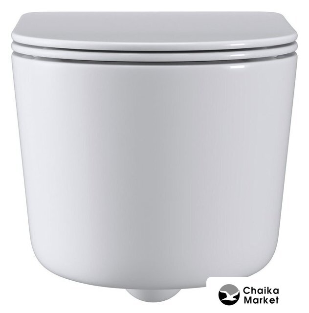 подвесной, конструкция: без бачка, задний подвод воды, горизонтальный выпуск, двухрежимный слив, с сиденьем, безободковый