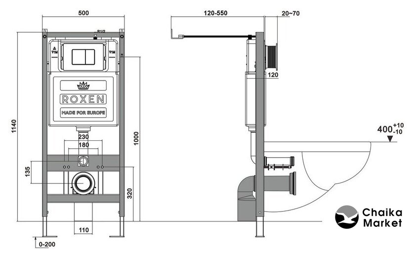 Отверстия под инсталляцию | 180 мм, 230 мм |