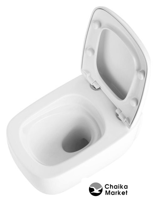 подвесной, конструкция: без бачка, горизонтальный выпуск, двухрежимный слив, с сиденьем, безободковый