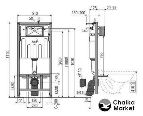 | Отверстия под инсталляцию | 180 мм, 230 мм |