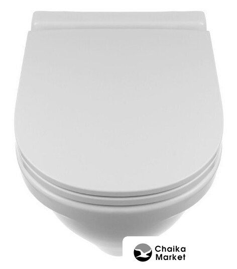 подвесной, конструкция: без бачка, задний подвод воды, горизонтальный выпуск, двухрежимный слив, с сиденьем, безободковый