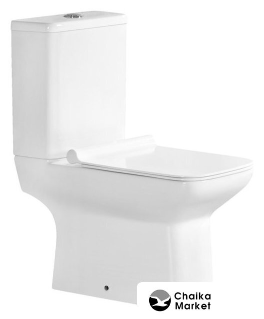 напольный, конструкция: компакт, нижний подвод воды, горизонтальный выпуск, двухрежимный слив, с сиденьем, безободковый