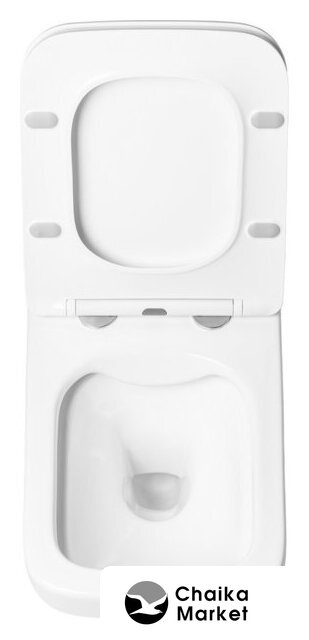 подвесной, конструкция: без бачка, задний подвод воды, горизонтальный выпуск, двухрежимный слив, с сиденьем, безободковый