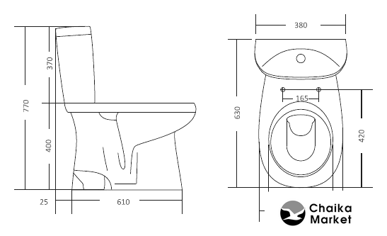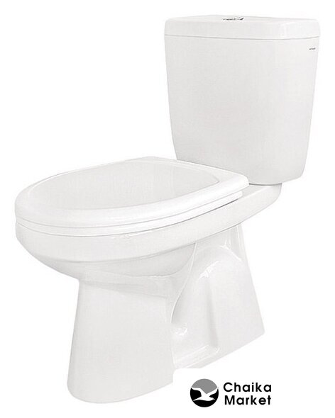 напольный, конструкция: компакт, нижний подвод воды, горизонтальный выпуск, однорежимный слив, с сиденьем