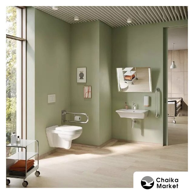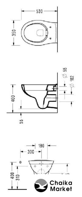 подвесной, конструкция: без бачка, задний подвод воды, горизонтальный выпуск, однорежимный слив, с сиденьем, безободковый