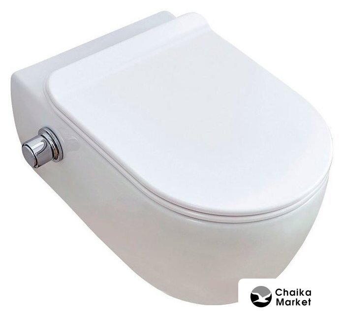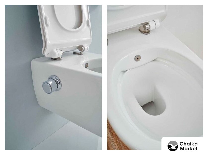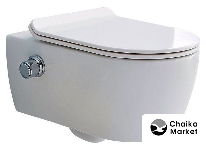 подвесной, конструкция: компакт, задний подвод воды, горизонтальный выпуск, двухрежимный слив, с сиденьем, безободковый