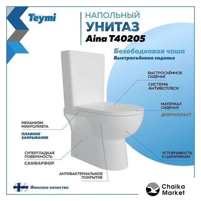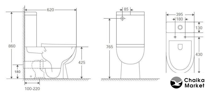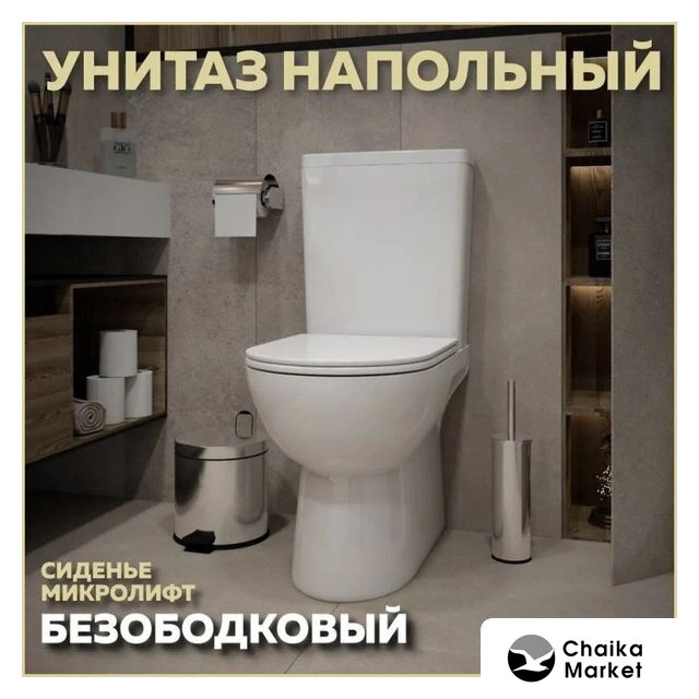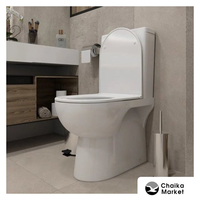напольный, компакт, нижний подвод воды, горизонтальный выпуск, с сиденьем