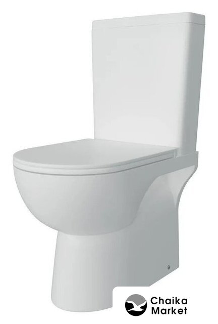 напольный, конструкция: компакт, нижний подвод воды, горизонтальный выпуск, двухрежимный слив, с сиденьем, безободковый