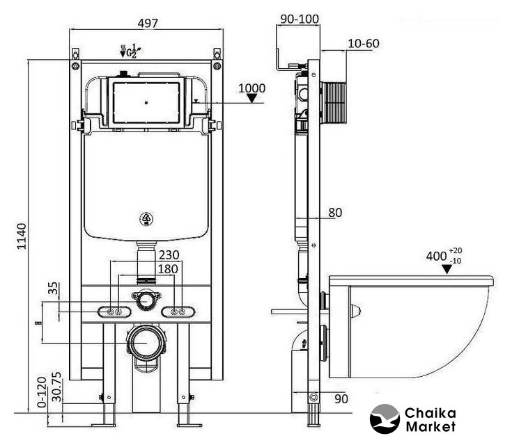 | Отверстия под инсталляцию | 180 мм |