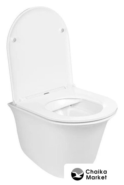 подвесной, конструкция: без бачка, задний подвод воды, горизонтальный выпуск, двухрежимный слив, с сиденьем, безободковый