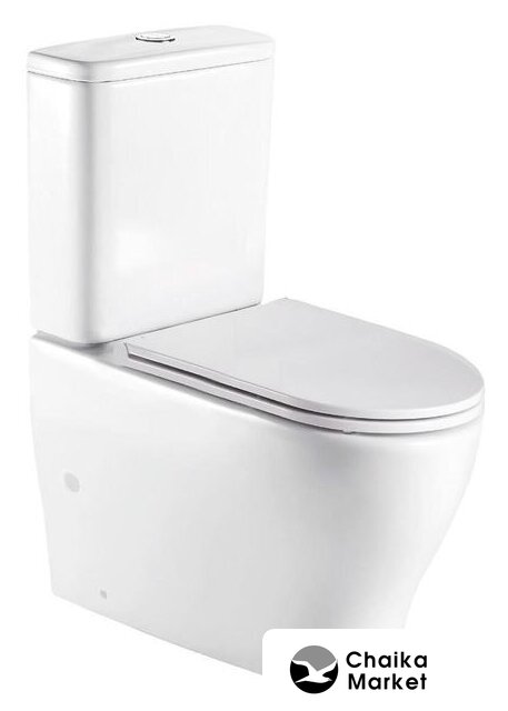 напольный, конструкция: компакт, нижний подвод воды, горизонтальный выпуск, двухрежимный слив, с сиденьем, безободковый