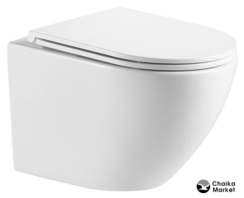 подвесной, конструкция: без бачка, задний подвод воды, горизонтальный выпуск, двухрежимный слив, с сиденьем, безободковый