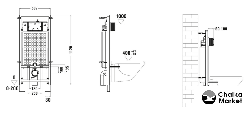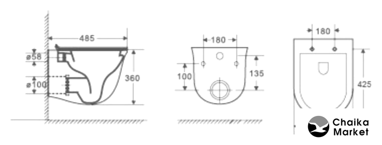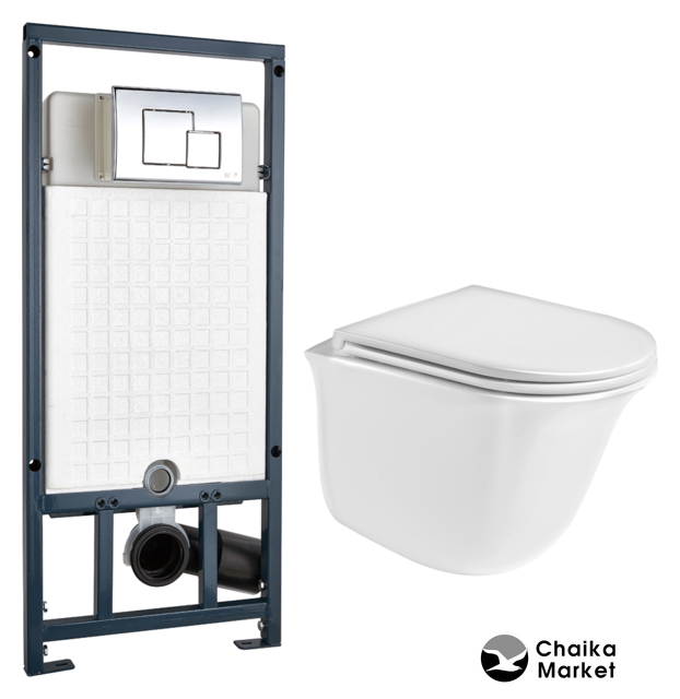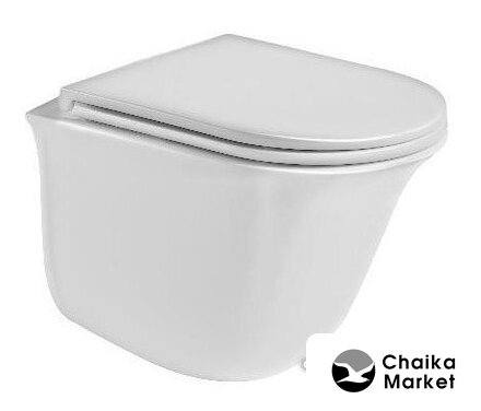 подвесной, без бачка, задний подвод воды, горизонтальный выпуск, двухрежимный слив, с сиденьем