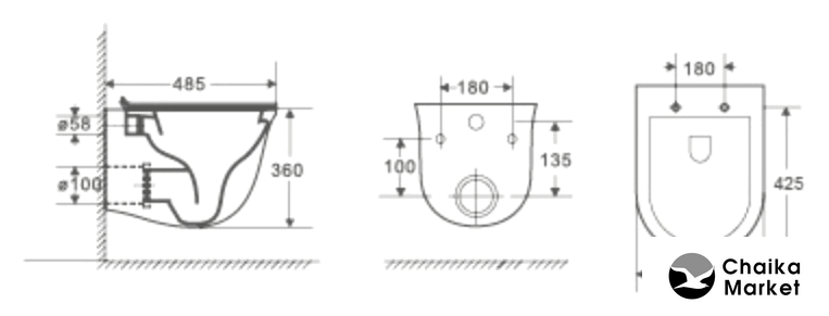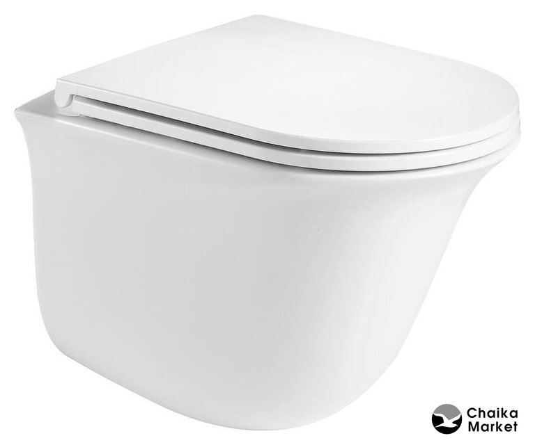 подвесной, конструкция: без бачка, задний подвод воды, горизонтальный выпуск, однорежимный слив, с сиденьем, безободковый
