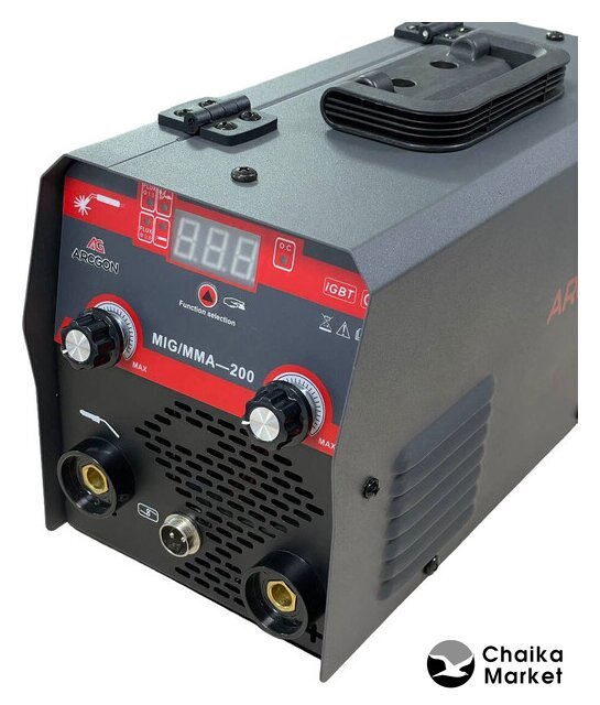 ручная дуговая сварка (MMA)/полуавтоматическая сварка (MIG MAG)/аргонодуговая сварка (TIG), 220 В, сварочный ток: 10–200 А, диаметр электрода: 1–5 мм, 12.5 кг