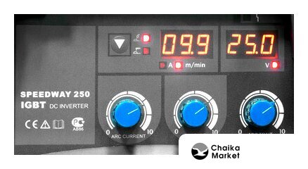 ручная дуговая сварка (MMA)/полуавтоматическая сварка (MIG MAG FCAW)/аргонодуговая сварка (TIG), входное напряжение 220 В, сварочный ток: 10–250 А, диаметр электрода: 1.6–5 мм