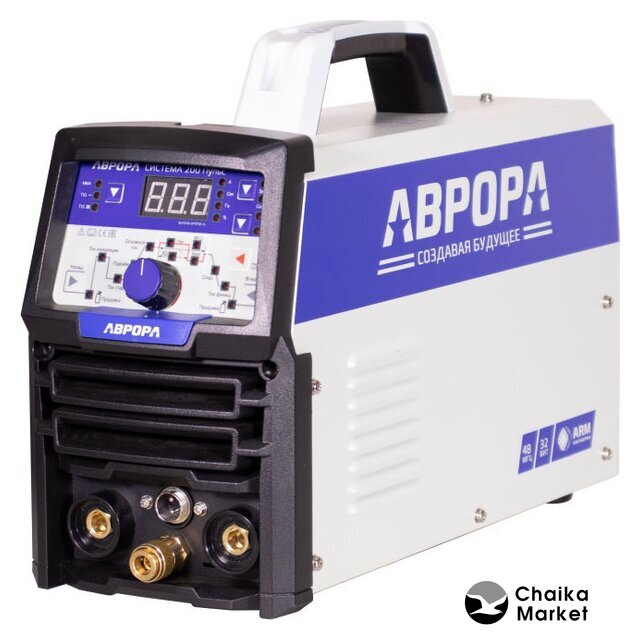 ручная дуговая сварка (MMA)/полуавтоматическая сварка (MIG MAG FCAW)/аргонодуговая сварка (TIG), входное напряжение 220 В, сварочный ток: 10–200 А, диаметр электрода: 1.6–4 мм, 17.5 кг