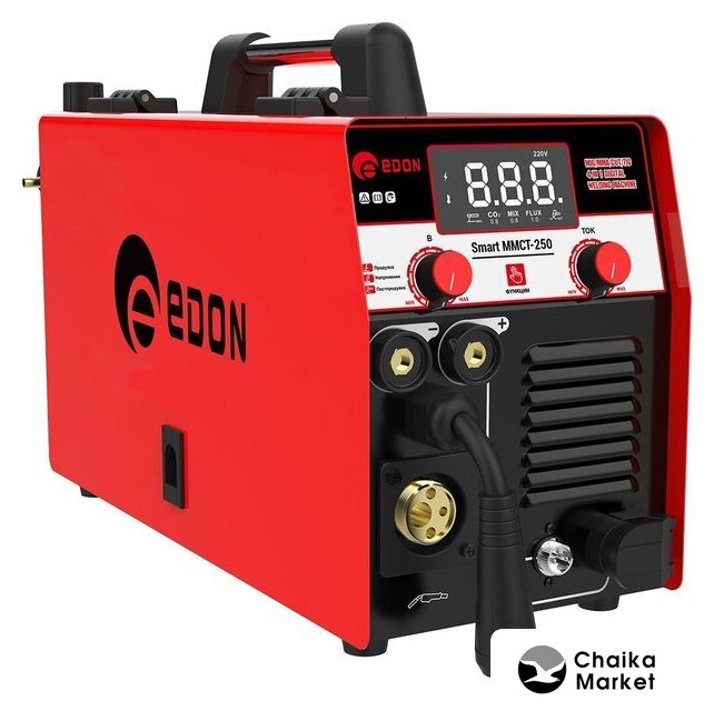 ручная дуговая сварка (MMA)/полуавтоматическая сварка (MIG MAG)/аргонодуговая сварка (TIG), 220 В, сварочный ток: 20–200 А, диаметр электрода: 1.6–4 мм, 12.4 кг