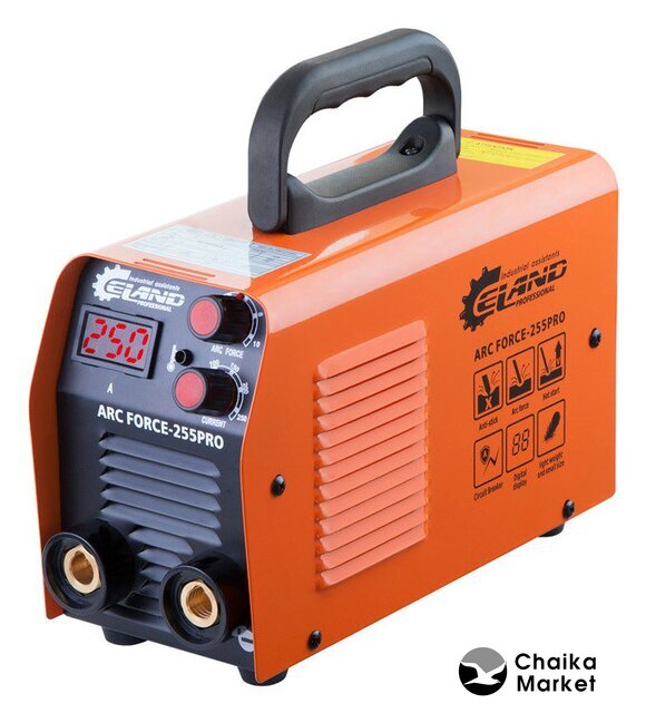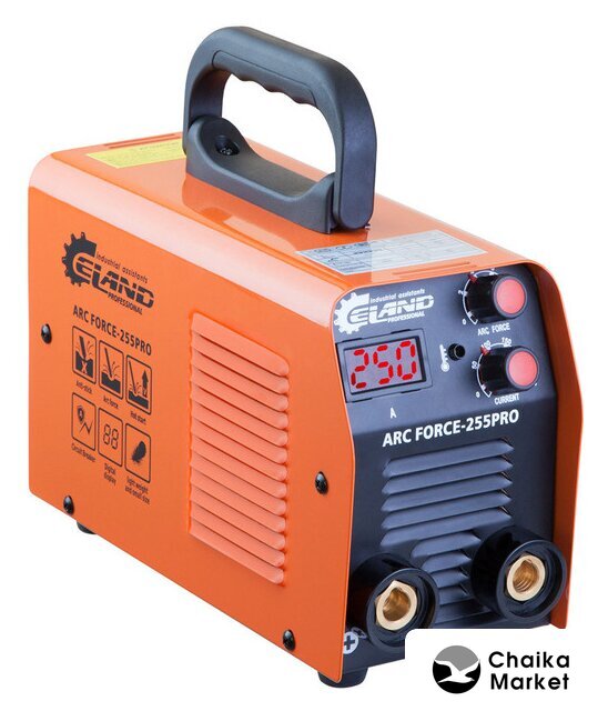 ручная дуговая сварка (MMA)/полуавтоматическая сварка (MIG MAG FCAW)/аргонодуговая сварка (TIG), входное напряжение 220 В, сварочный ток: 20-250 А, диаметр электрода: 1.6–4 мм, 7.2 кг