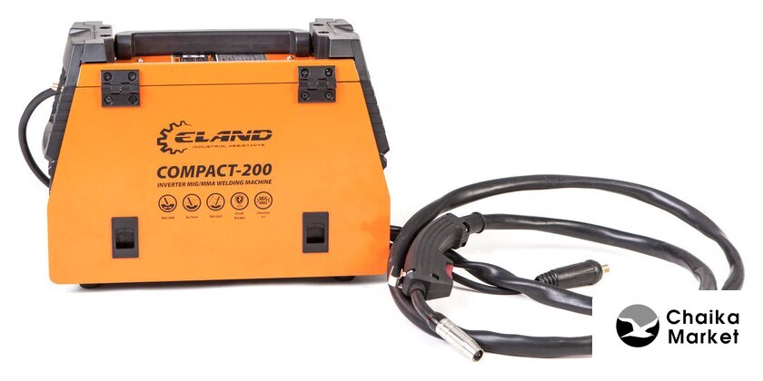 ручная дуговая сварка (MMA), входное напряжение 220 В, сварочный ток: 30–200 А, диаметр электрода: 1.6–4 мм, 6 кг