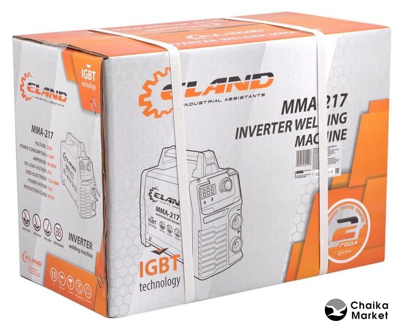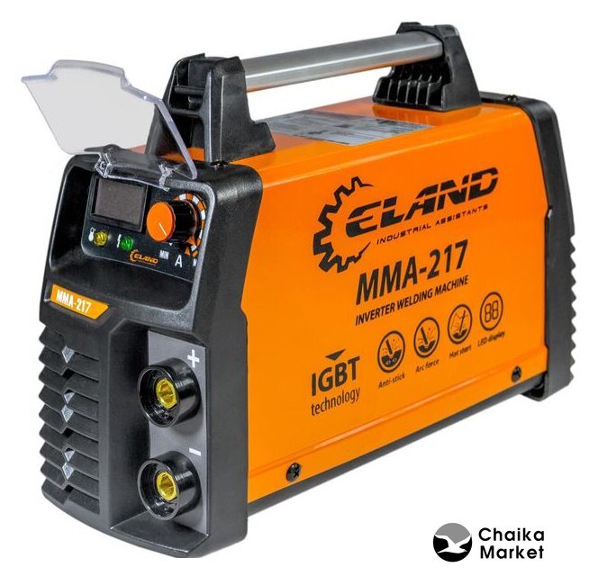 ручная дуговая сварка (MMA), 220 В, сварочный ток: 10–205 А, диаметр электрода: 1.6–5 мм, 3.1 кг