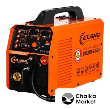 ручная дуговая сварка (MMA)/полуавтоматическая сварка (MIG MAG)/аргонодуговая сварка (TIG), входное напряжение 220 В, сварочный ток: 20–200 А, диаметр электрода: 1.6–4 мм, 14.45 кг