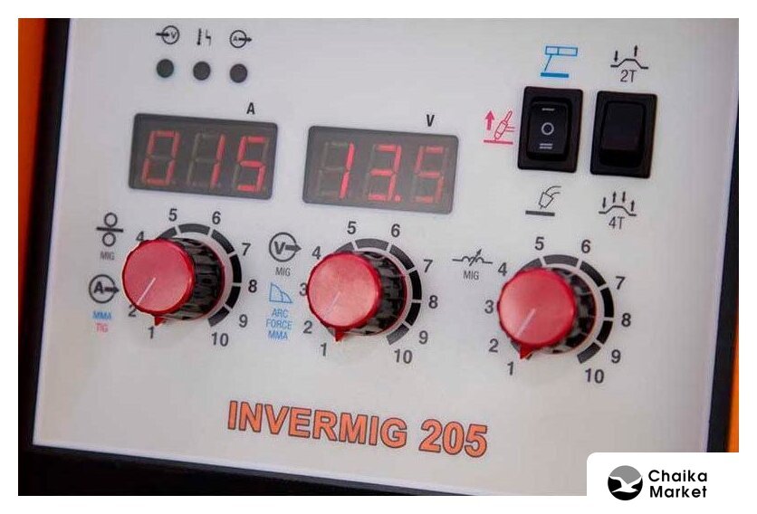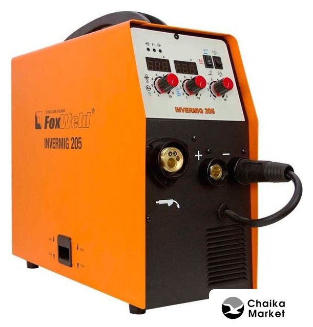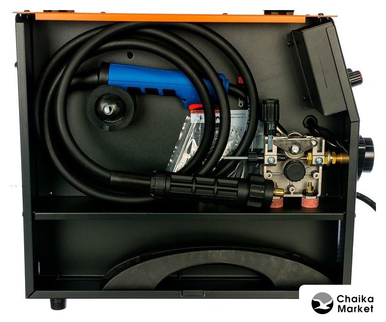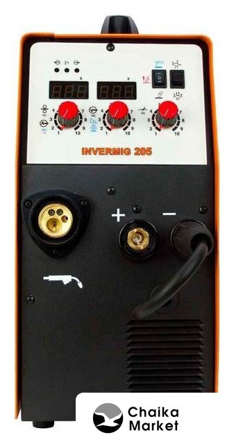 Комплект поставки | Инвертор — 1 шт.Горелка MIG-15 (3м) — 1 шт.Зажим на массу с кабелем 1,5м — 1 компл.Шланг газовый — 3мКомплект ЗИП (сопло Ø 12мм; наконечники Ø 0.8 — 2шт, Ø 1.0 — 2шт; хомуты — 2шт; болты для крепления ручки; ключ; ручка; ролик 0.8/1.0) |
