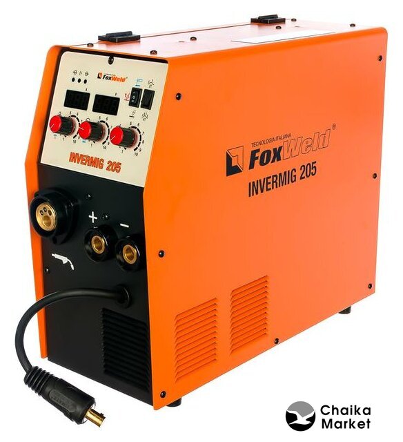 ручная дуговая сварка (MMA)/аргонодуговая сварка (TIG), входное напряжение 220 В, сварочный ток: 5-200 А, диаметр электрода: 1.6–4 мм, 8.5 кг