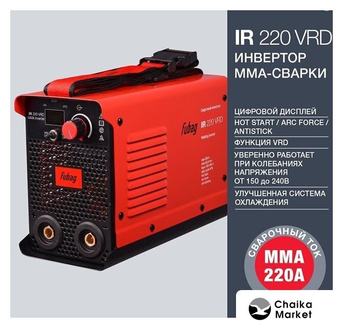 ручная дуговая сварка (MMA), 220 В, сварочный ток: 20–230 А, диаметр электрода: 1.6–4 мм, 2.9 кг