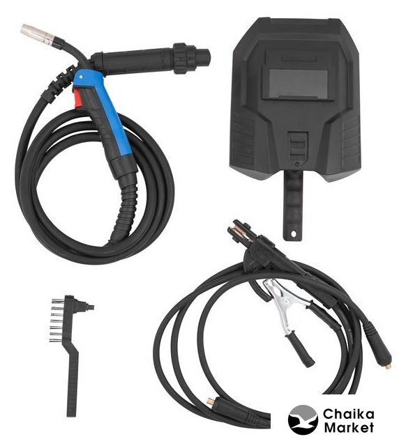 Комплект поставки | - сварочный щиток;- молоток-щетка;- горелка АК15 с евроразъемом 3м;- кабель заземления 1.2м;- 2 наконечника для сопла горелки (0.6 и 0.8 мм). |