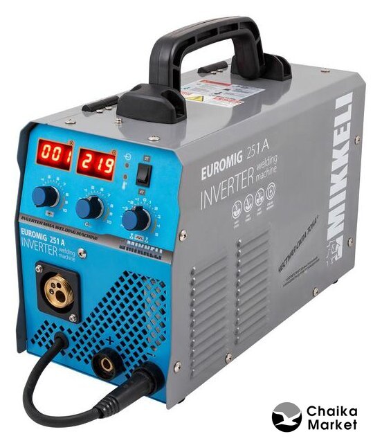 ручная дуговая сварка (MMA)/полуавтоматическая сварка (MIG MAG), 220 В, сварочный ток: 30–200 А, диаметр электрода: 1.6–5 мм, 12.1 кг