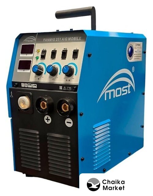 ручная дуговая сварка (MMA)/полуавтоматическая сварка (MIG MAG)/аргонодуговая сварка (TIG), 220 В, сварочный ток: 10–175 А, диаметр электрода: 0.6–1 мм, 12.8 кг
