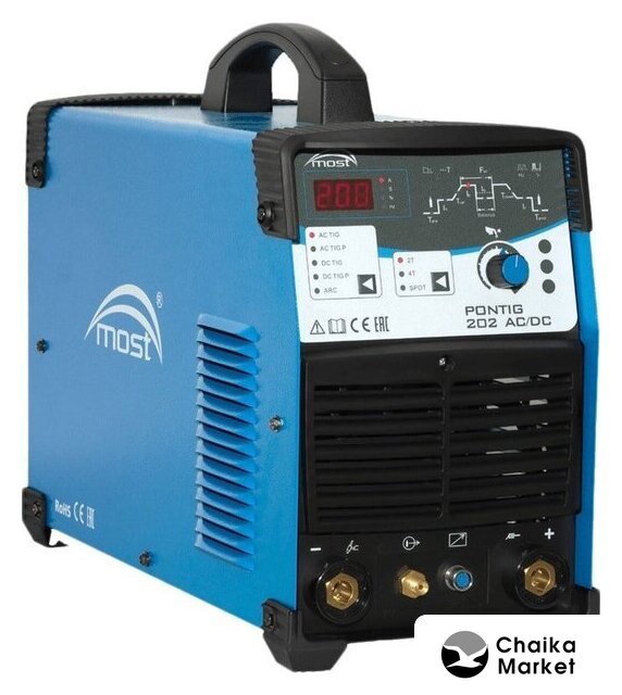 Комплект поставки | - Выпрямитель MOST PONTIG 202 AC/DC;- Сетевой кабель 2,5 м 3*2,5 мм² с вилкой на 220В;- Провод с электрододержателем для сварки ММА 25 мм² - длиной 2500 мм;- Провод заземления с зажимом массы 25 мм² - длиной 1500 мм. |