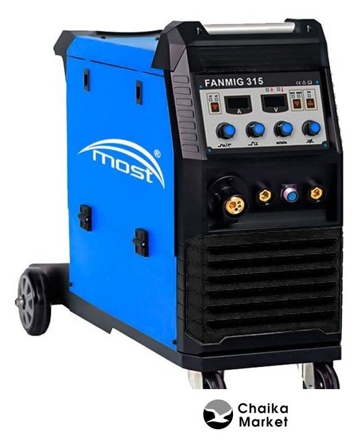 Комплект поставки | - Сварочный полуавтомат MOST FANMIG 315 A/G;- Сетевой кабель 4х4 мм2 с вилкой для подключения - 2,5 метра;- Сварочный кабель 1x25 мм2 с зажимом массы и байонетным разъемом 35/50 - 3 метра;- Подающие ролики 40/32/10 мм под сплошную проволоку Ø 0,8 - 1,0мм (установлен в аппарате) - 1шт;- Газовый шланг 2 метра, 2 хомута для крепления;- Тележка для установки баллона с колёсами;- Инструкция по эксплуатации;- Картонная упаковка. |