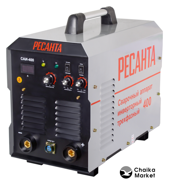 Комплект поставки | 1. Сварочный аппарат «Ресанта» 1 шт.2. Кабель с электрододержателем 1 шт.3. Кабель с клеммой заземления 1 шт.4. Паспорт 1 шт.5. Пульт дистанционного управления (для САИ-400) 1 шт. |