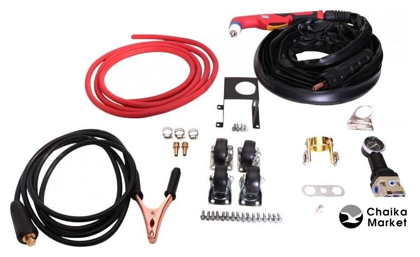 Комплект поставки | - Инверторный аппарат для воздушно-плазменной резки- Плазменный резак ИПР 100 в сборе, 6м- Клемма заземления в сборе 300А с кабелем 16 мм2, 3м- Влагомаслоотделитель- Шланг газовый 8х12, 3м- Ключ для затяжки электрода и наконечника.- Электрод- Сопло- Ограничитель- Паспорт |